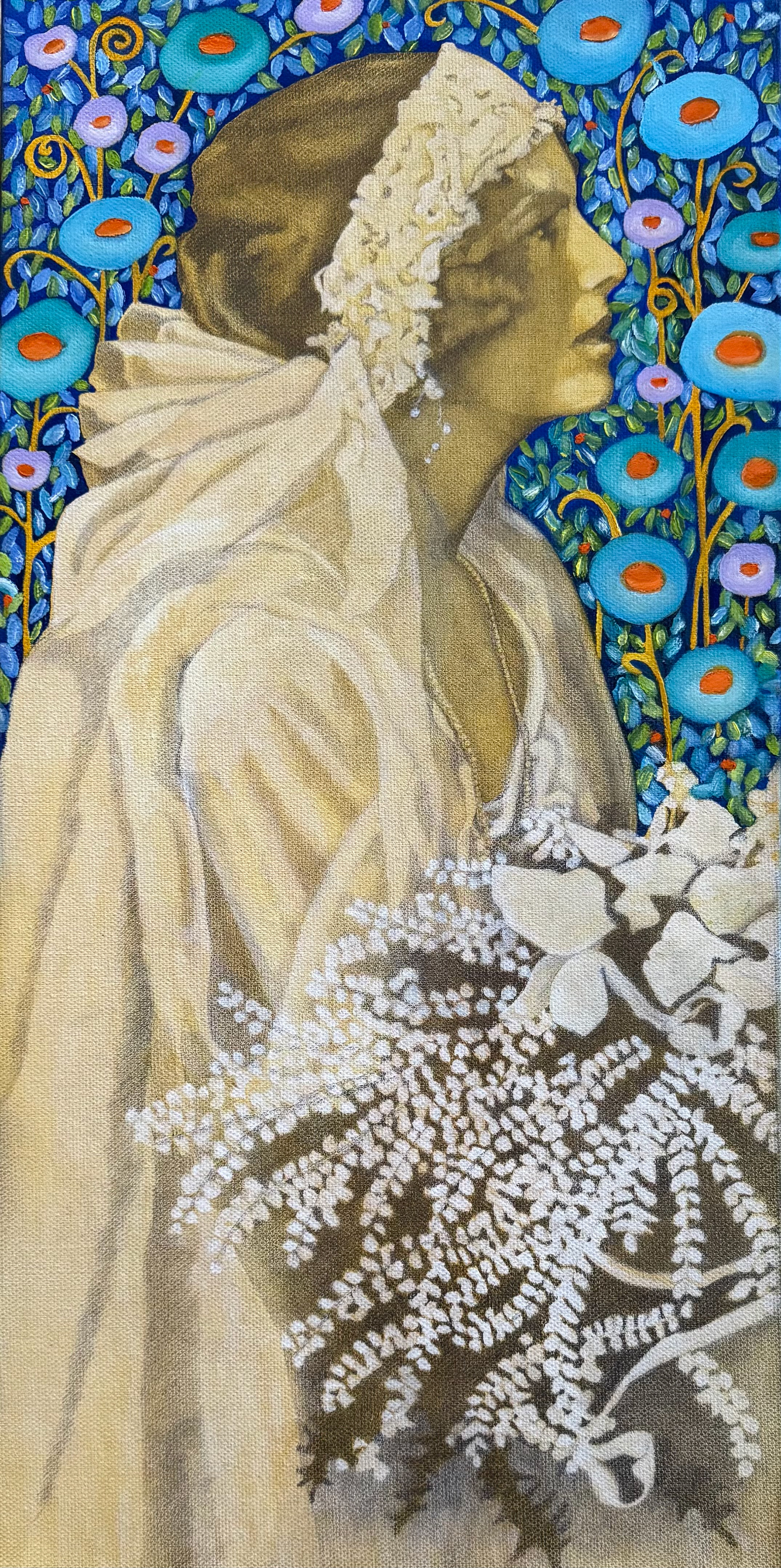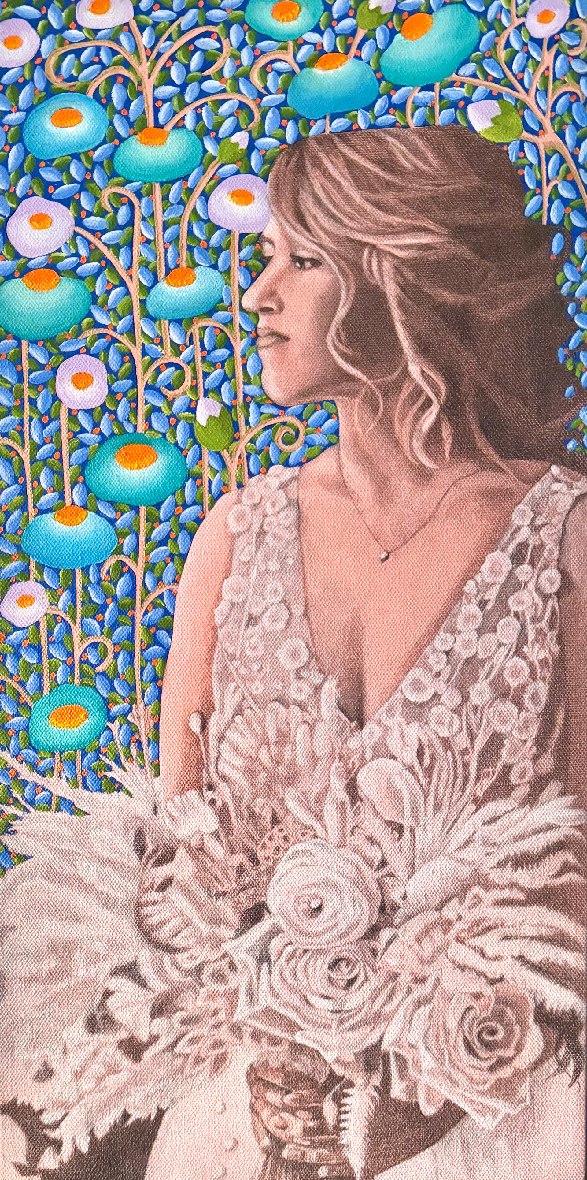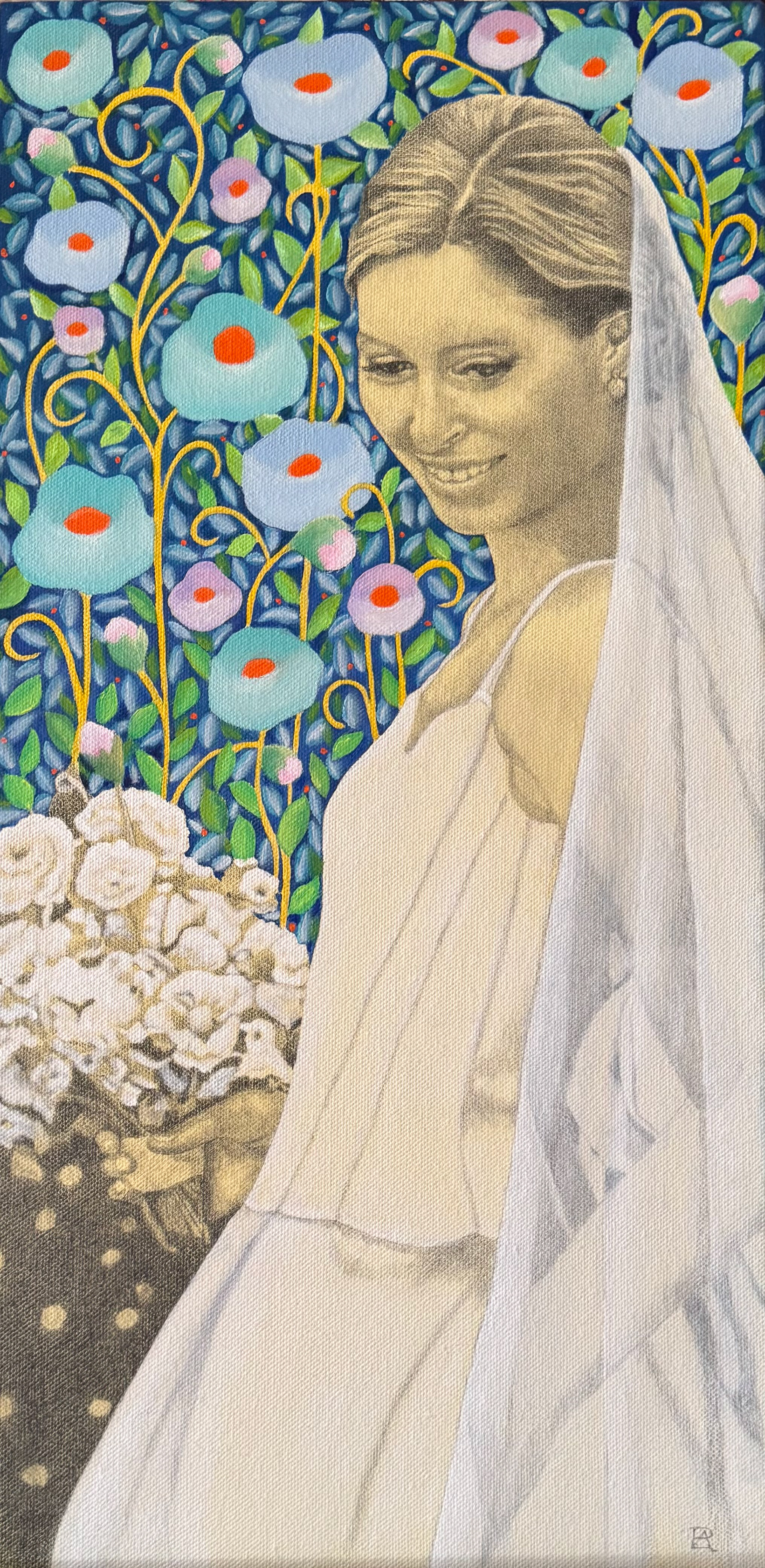 Oils, acrylics and graphite used in creating these one of a kind portraits of your special day.